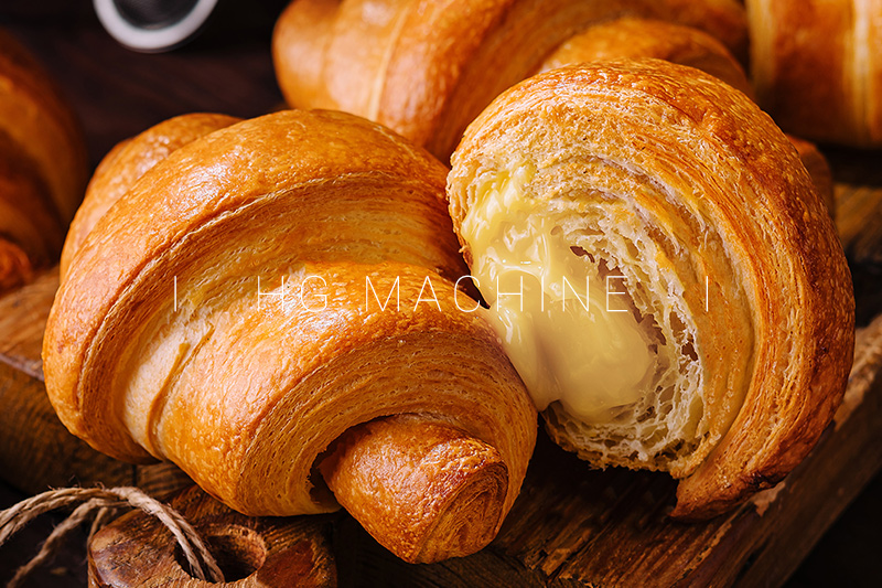 Ця повністю автоматизована лінія виробництва круасанів є свого роду в Китаї. Його основні компоненти включають повністю автоматичну машину для формування листкового тіста та круасана. Він автоматизує весь процес, від формування листкового тіста, пресування та різання до точіння, прокатки та формування. Це виключає необхідність ручного втручання в ключові кроки, значно покращуючи ефективність виробництва та консистенцію продукту, забезпечуючи точну якість круасанів з "багатошаровим листковим тістом, золотистою скоринкою та м'яким інтер'єром" Обладнання гнучко налаштовується, з вибраними режимами різання залежно від ваги продукту. Він може виробляти від двох до шести рядів круасанового тіста одночасно, адаптуючись до потреб масового виробництва пекарень будь-якого розміру та легко задовольняючи різноманітні ринкові потреби в круасанах.