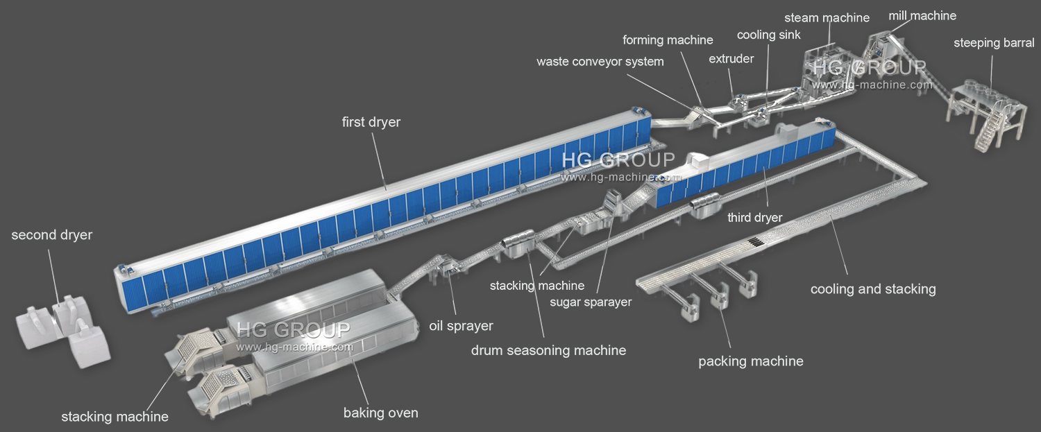 Ця повністю автоматична лінія з виробництва крекерів для снігового рису включає в себе передові машини для обробки крекерів для снігового рису з Японії та Тайваню. Зберігаючи основні принципи виробництва, він оптимізований для специфічних характеристик китайських сортів рису та вимог великомасштабного виробництва. Вся виробнича лінія складається з чотирьох секцій: фрезерування, формування, затягування, приправа та пакування. Як вітчизняний досвідчений виробник обладнання для переробки рису, це обладнання з його ефективною та стабільною продуктивністю, високою потужністю виробництва та низькими інвестиційними витратами стало найкращим вибором для харчових компаній, що розробляють продукти для крекінгу снігового рису.